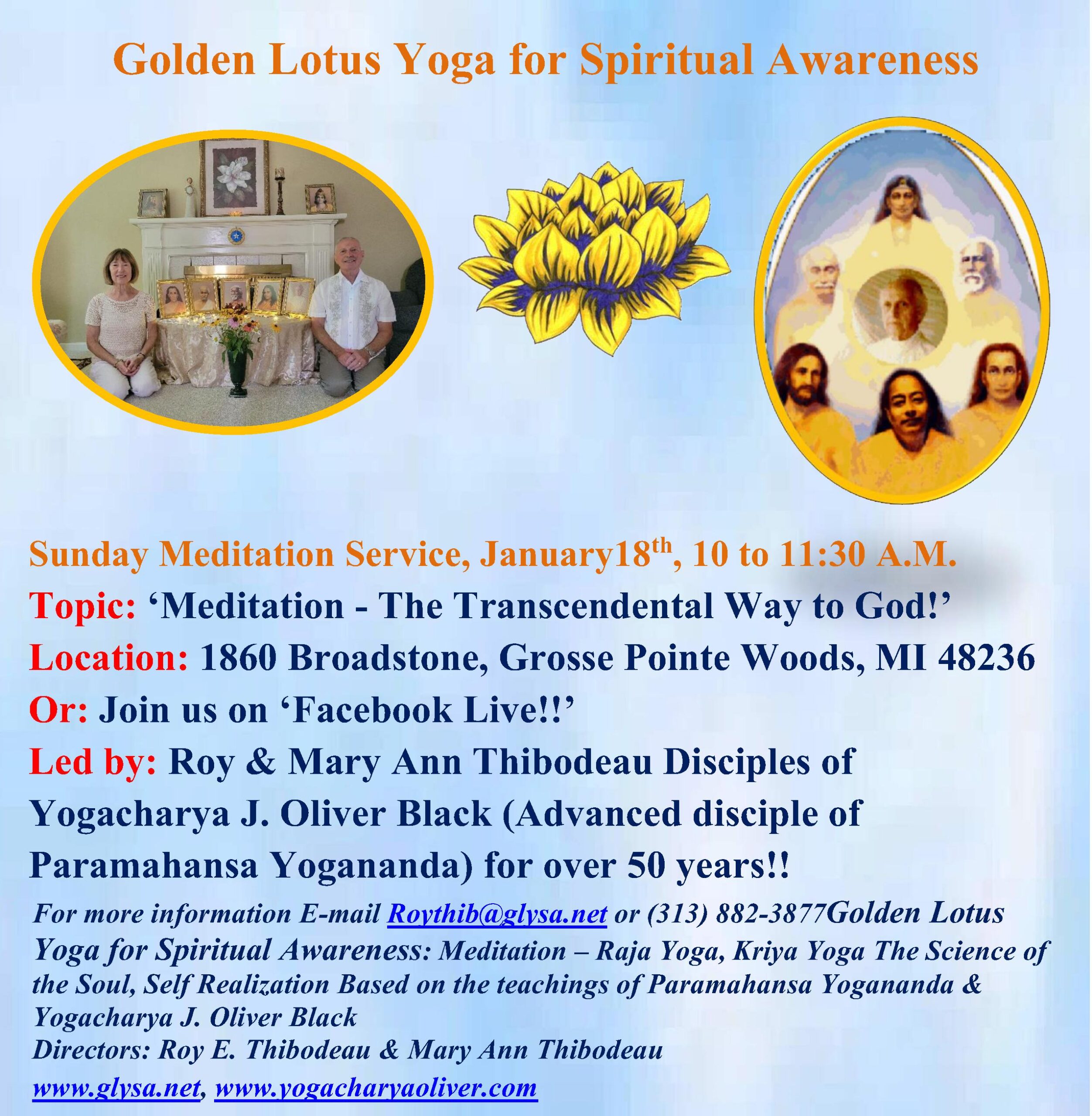 Sunday Meditation Service January 18th