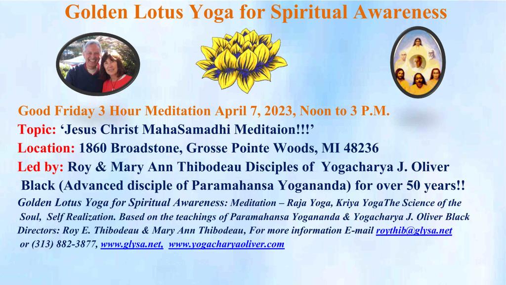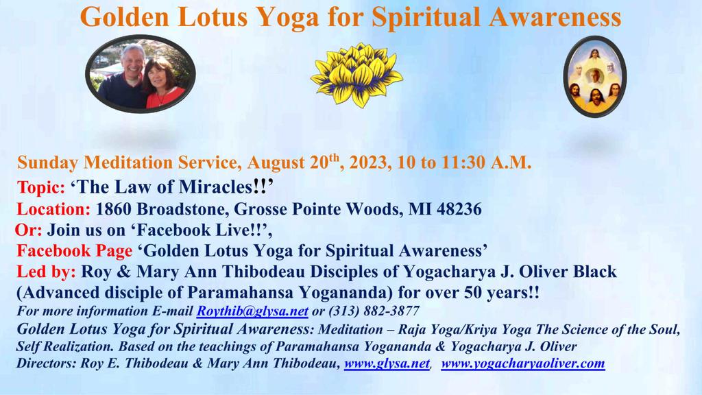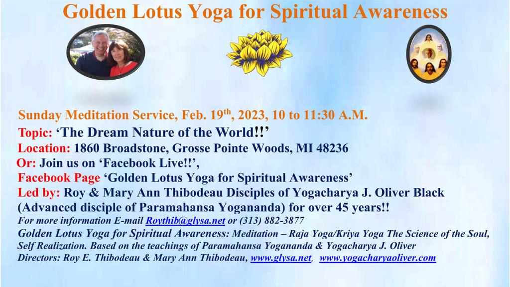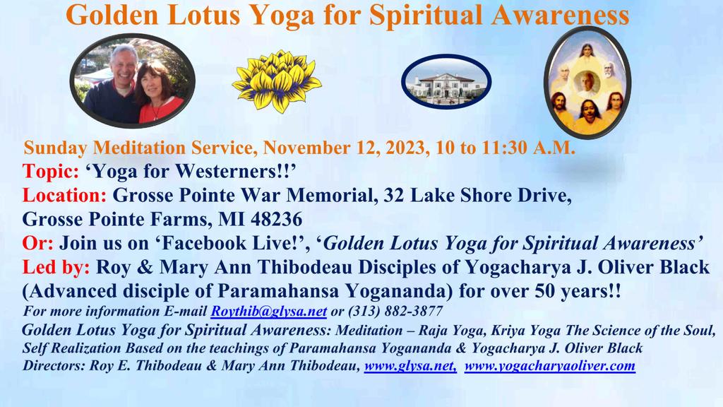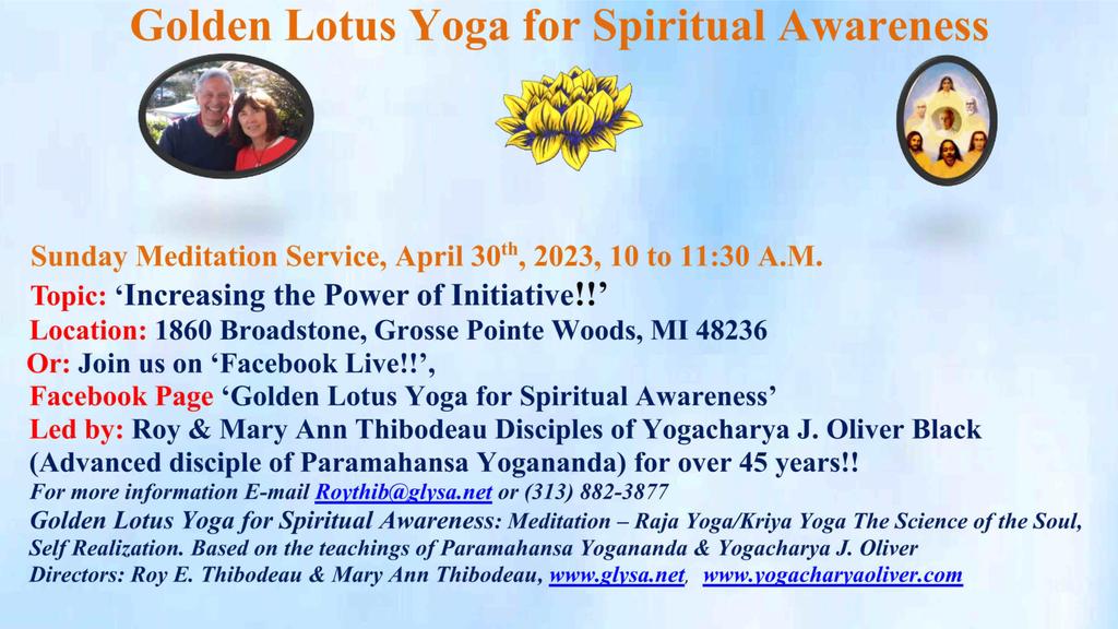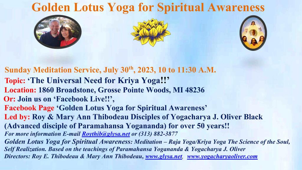 1860 Broadstone Rd 1860 Broadstone Rd, Grosse Pointe Woods, Mi, United StatesJoin us for our Sunday Meditation Service - 'How to Dissolve the Causes of War!' Or join us on Facebook Live! Our Facebook Page is ***Golden Lotus Yoga for Spiritual Awareness***