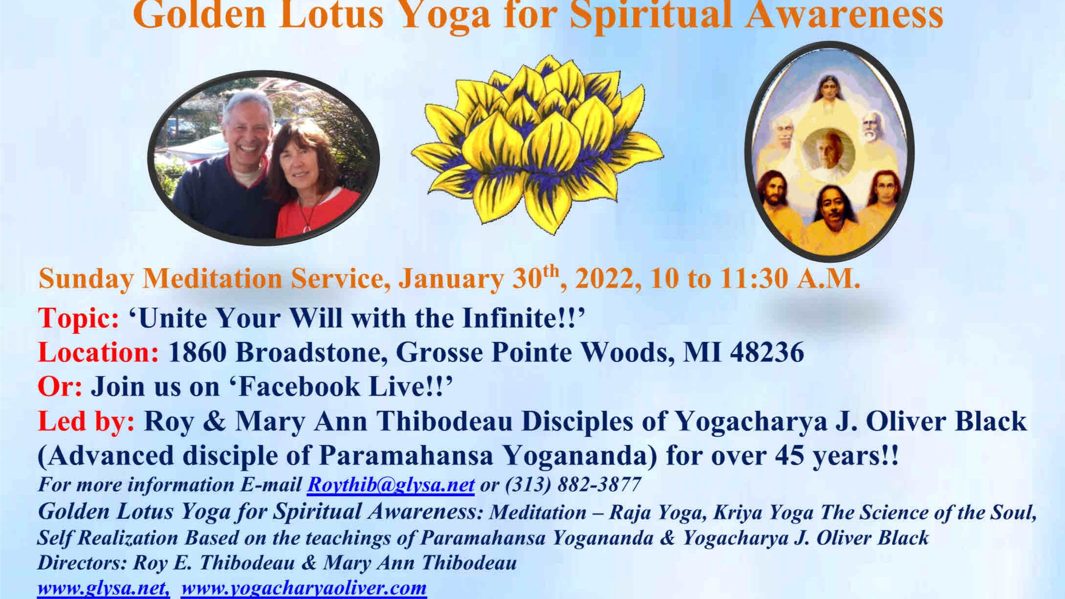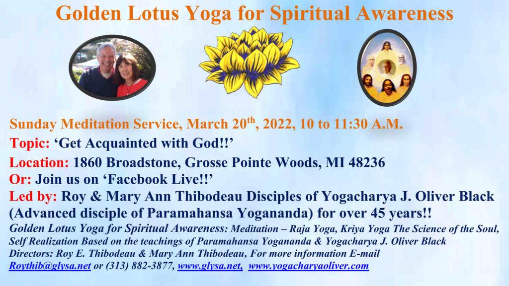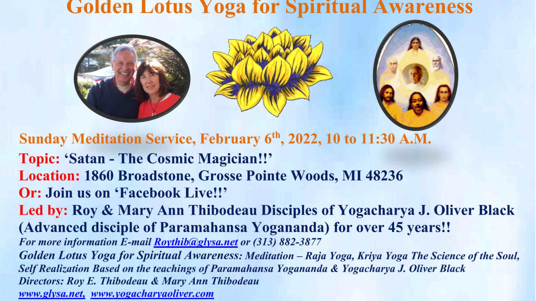 1860 Broadstone Rd 1860 Broadstone Rd, Grosse Pointe Woods, Mi, United Stateshttp://photos4.meetupstatic.com/photos/event/5/b/1/5/600_434663317.jpeg All levels of Meditators or welcome. There will be instructions and inspiration for new inexperienced meditators. The hosts, meditators and Kriya Yoga initiates for over 45 years, are direct disciples of Yogacharya J. Oliver Black one of Paramahansa Yogananda's most advanced male disciples. He is the founder of Golden Lotus, Inc., which owns & operates 'Song of the Morning' an 800 acre Yoga Retreat Northest of Gaylord, MI on the Pigeon River. Paramahansa Yogananda […]